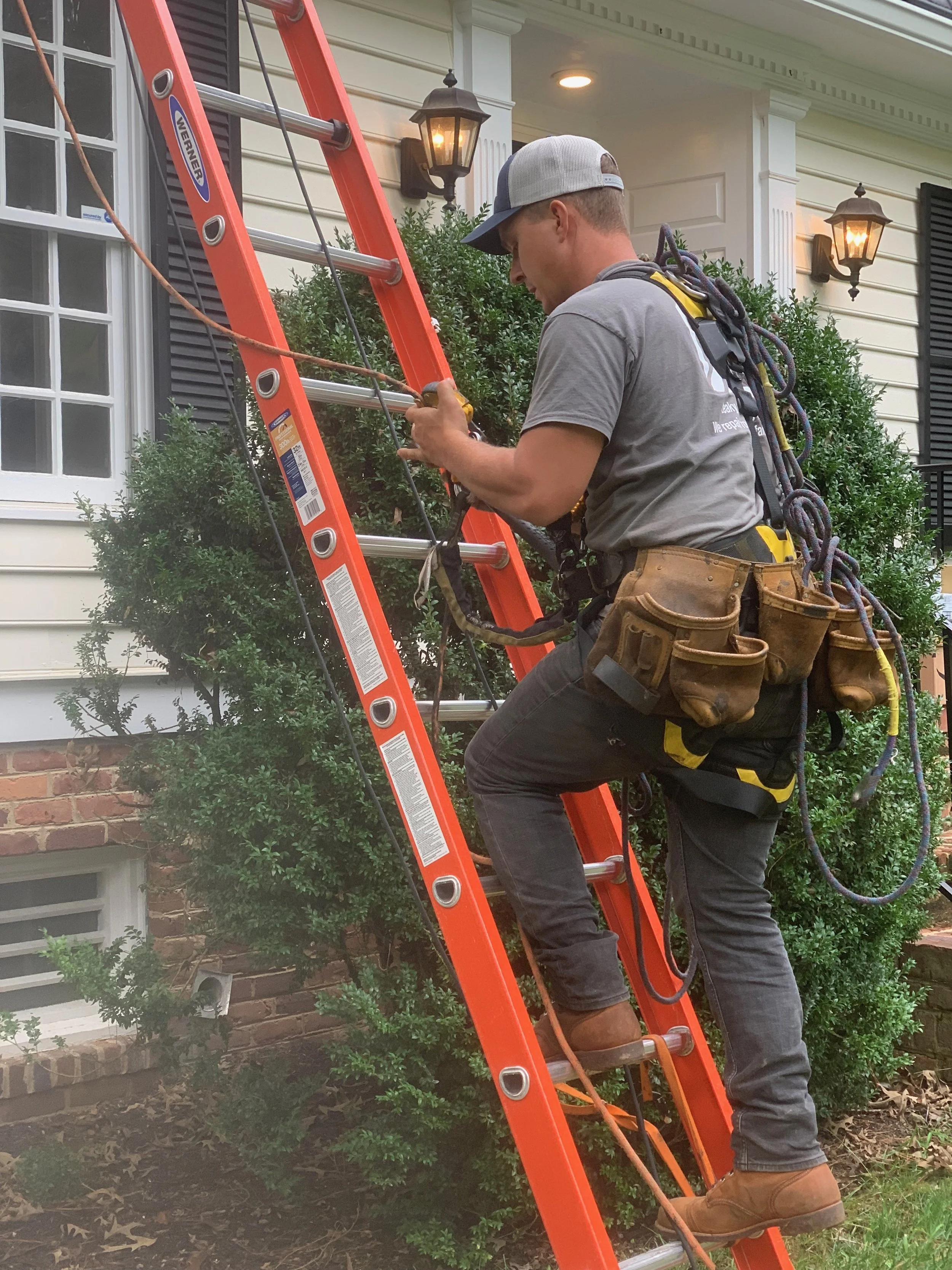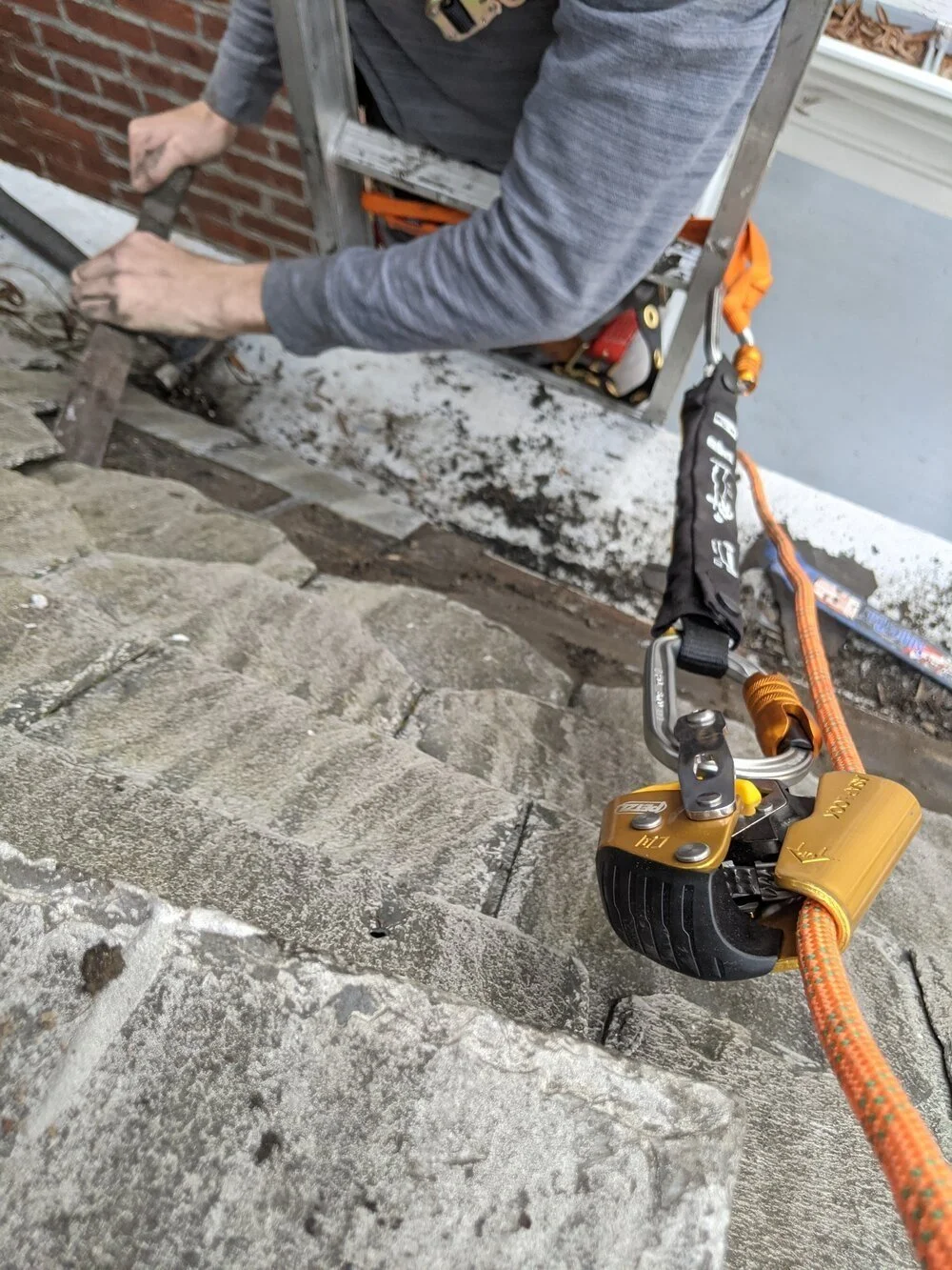Richmond Roofing Contractor uses climbing ropes and Petzl climbing gear for safe roof access.
