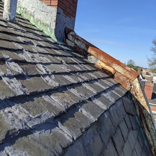 We often repair broken slates caused by negligent roofing contractors or painters walking on the roof. Putting unequal pressure on one part of the slate will fracture the tiles even if they don’t break immediately.